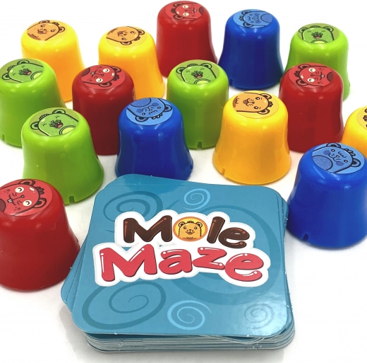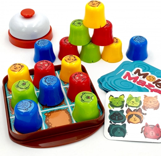 Het spel MOLE MAZE combineert leren en plezier in een compact formaat dat je overal mee naartoe neemt. Het doel is om de gekleurde stukjes zo snel mogelijk te rangschikken volgens het patroon op de kaart en te bellen – wie het eerst belt, wint. Dankzij de eenvoudige regels genieten zowel jongere als oudere kinderen van het spel.