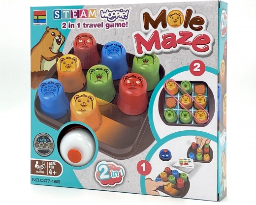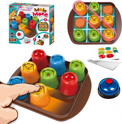Slim en leuk logisch spel MOLE MAZE voor 1–2 spelers dat logisch denken, ruimtelijk inzicht en oog-handcoördinatie ontwikkelt. Gekleurde opdrachtkaarten en een snelle bel veranderen elke ronde in een spannende uitdaging. Dankzij het compacte, draagbare ontwerp is het spel ideaal voor thuis en onderweg. De verpakking bevat 8 stuks van het product.