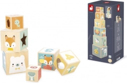 Gladde houten blokken met schattige dieren en zachte kleuren nodigen uit tot spel en zijn bestand tegen dagelijks gebruik.