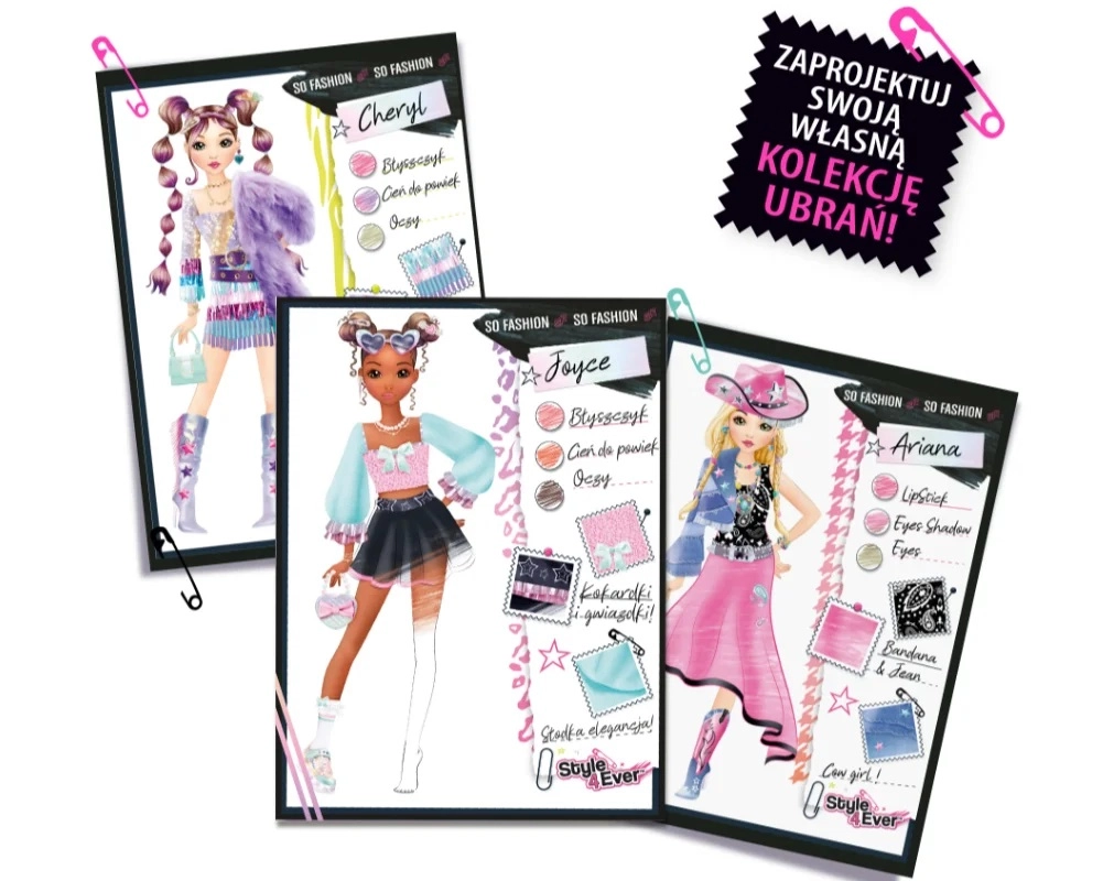 Sjablonen en stickers maken het mogelijk volledige looks te ontwerpen, inclusief accessoires – van handtassen tot details op jurken.