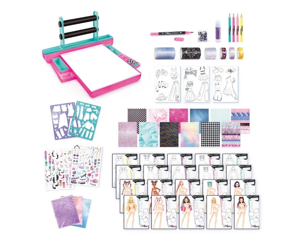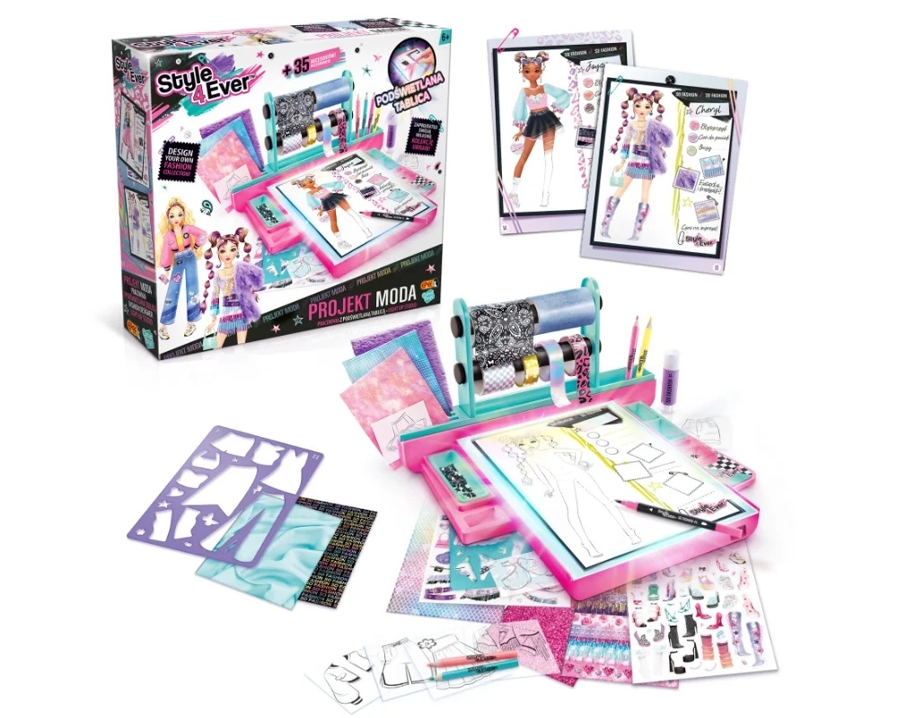 Met deze set veranderen kinderen in kleine modeontwerpers. Het verlichte tekenbord maakt het overtrekken van elektrostatische en klassieke sjablonen eenvoudig, waardoor schone en creatieve ontwerpen ontstaan. Daarna is het alleen nog afwerken met dessinpapier, zelfklevende stoffen, washi-tapes en kristallen – en de originele collectie is geboren.