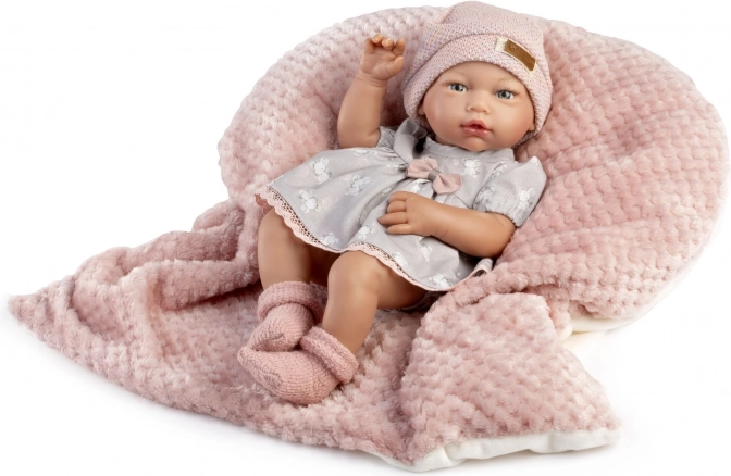 Een schattige, realistische pasgeboren babypop van 38 cm zal elke kleine verzorger blij maken. Ze heeft een volledig vinyl lichaam met gedetailleerde afwerking, kan in bad, heeft bewegende ledematen en is met de hand gemaakt in Spanje. Wordt geleverd in een cadeaudoos en is geschikt vanaf 3 jaar.