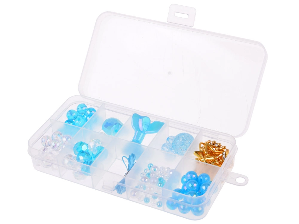 Kleurige glitters, pailletten en kralen berg je op in een transparante box met vakjes – alles geordend en altijd binnen handbereik.