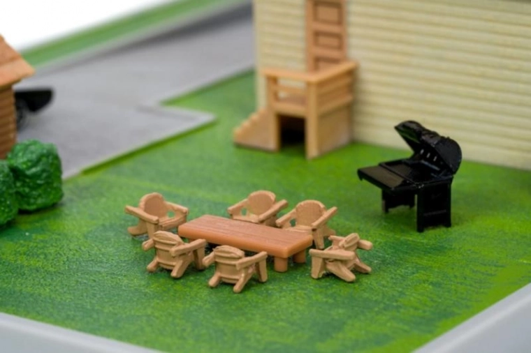 Bijgevoegd zijn 2 metalen nano-autootjes in dioramaschaal – Dodge Charger en Toyota Supra – met vrijrollende wielen en rubberen banden voor soepele beweging. De sfeer wordt compleet gemaakt met een tuinbarbecue en meubelset voor realistische scènes en foto’s.