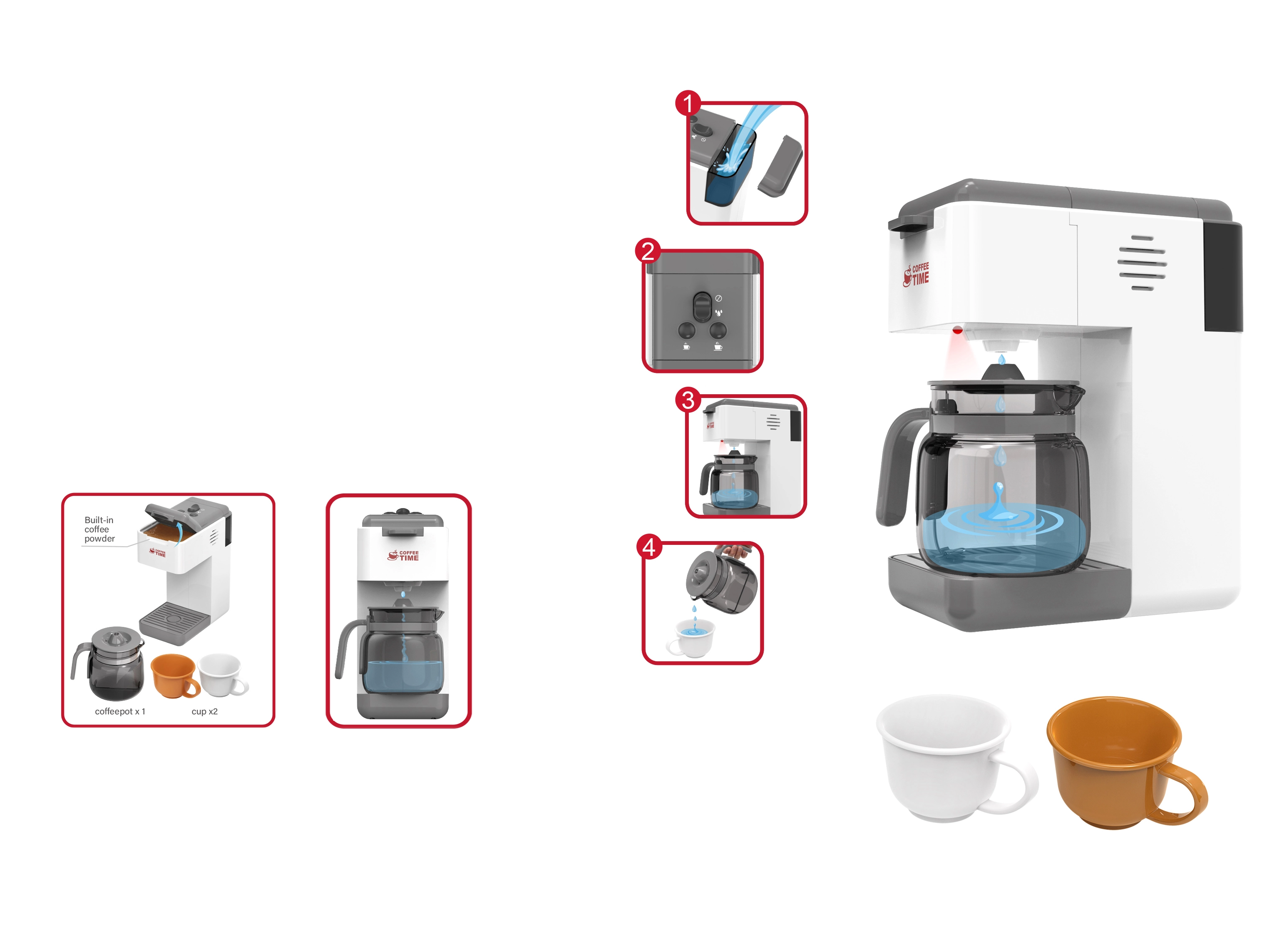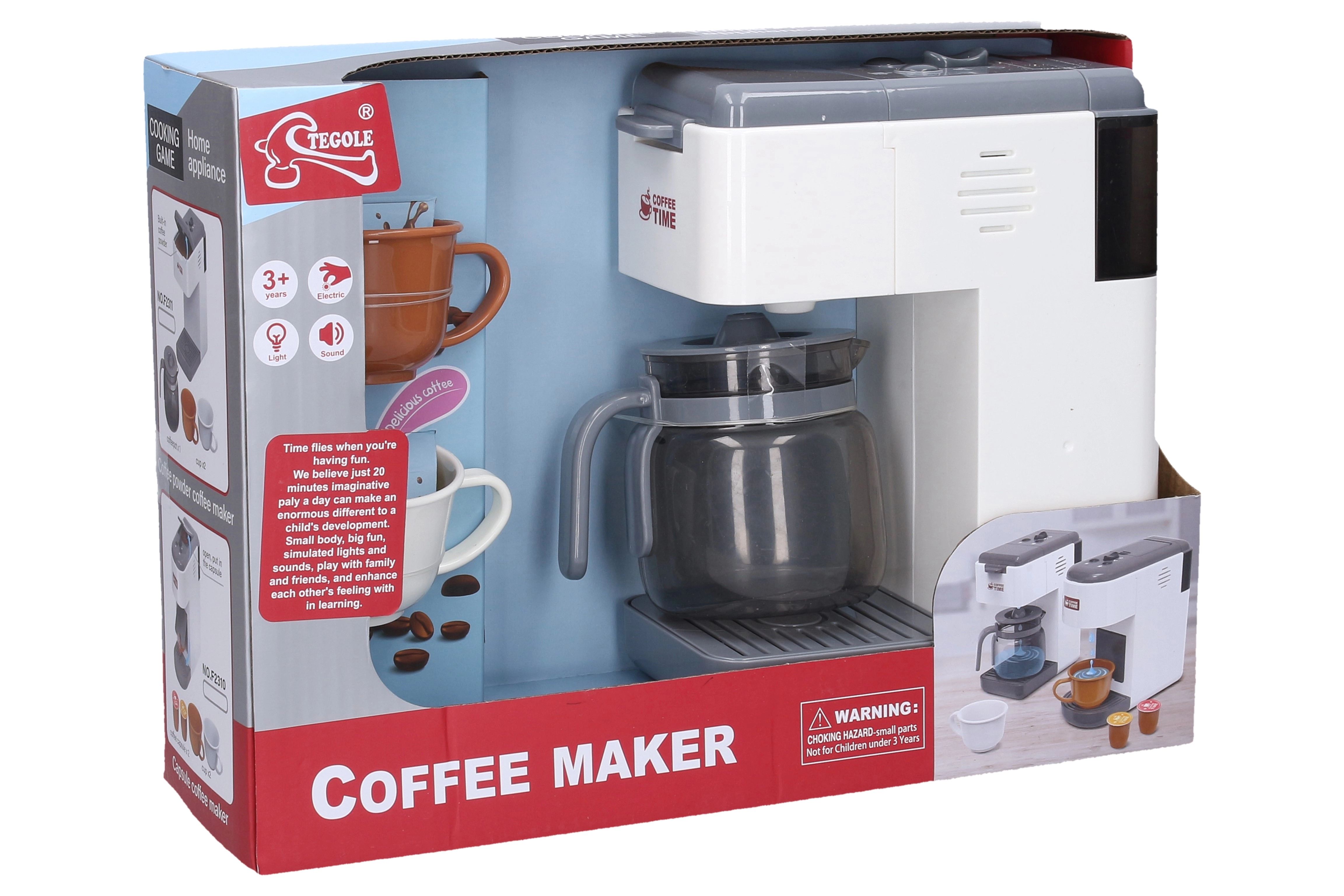 Ontdek dit leuke kinderkoffiezetapparaat met kan, dat echt koffiezetten simuleert. Vul simpelweg het reservoir met water en het apparaat vult automatisch de kan. Dankzij de licht- en geluidseffecten is het spel nog realistischer, terwijl de on/off-knop zorgt voor eenvoudige bediening, ook voor jongere kinderen.