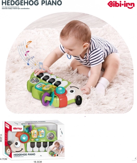 Maak je kind spelenderwijs vertrouwd met muziek dankzij dit schattige egelpiano’tje. De speelgoedpiano valt op door levendige kleuren en een veilige afwerking, en ondersteunt de ontwikkeling van het gehoor en de oog-handcoördinatie en prikkelt de nieuwsgierigheid. Boven de toetsen zitten een modus-schakelaar en een knop om melodieën te starten, daarboven een draaibaar boekje, een trommeltje, een rammelaar met gekleurde balletjes en een handig bijtspeeltje.