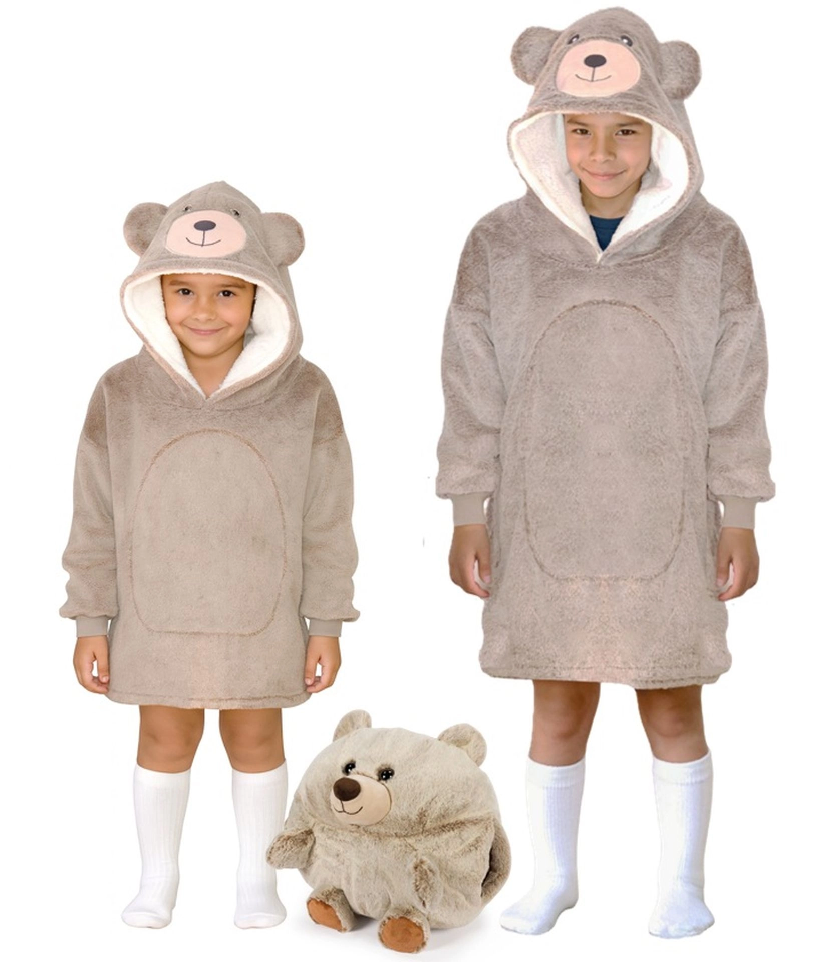 Ideaal thuis bij het kijken van een filmpje, tijdens het spelen, op de camping of in het vakantiehuisje. De grote capuchon met berenoortjes en de ruime voorzak houden hoofd en handen warm. Eenvoudig te onderhouden in de wasmachine, zodat dagelijks gebruik makkelijk blijft.
