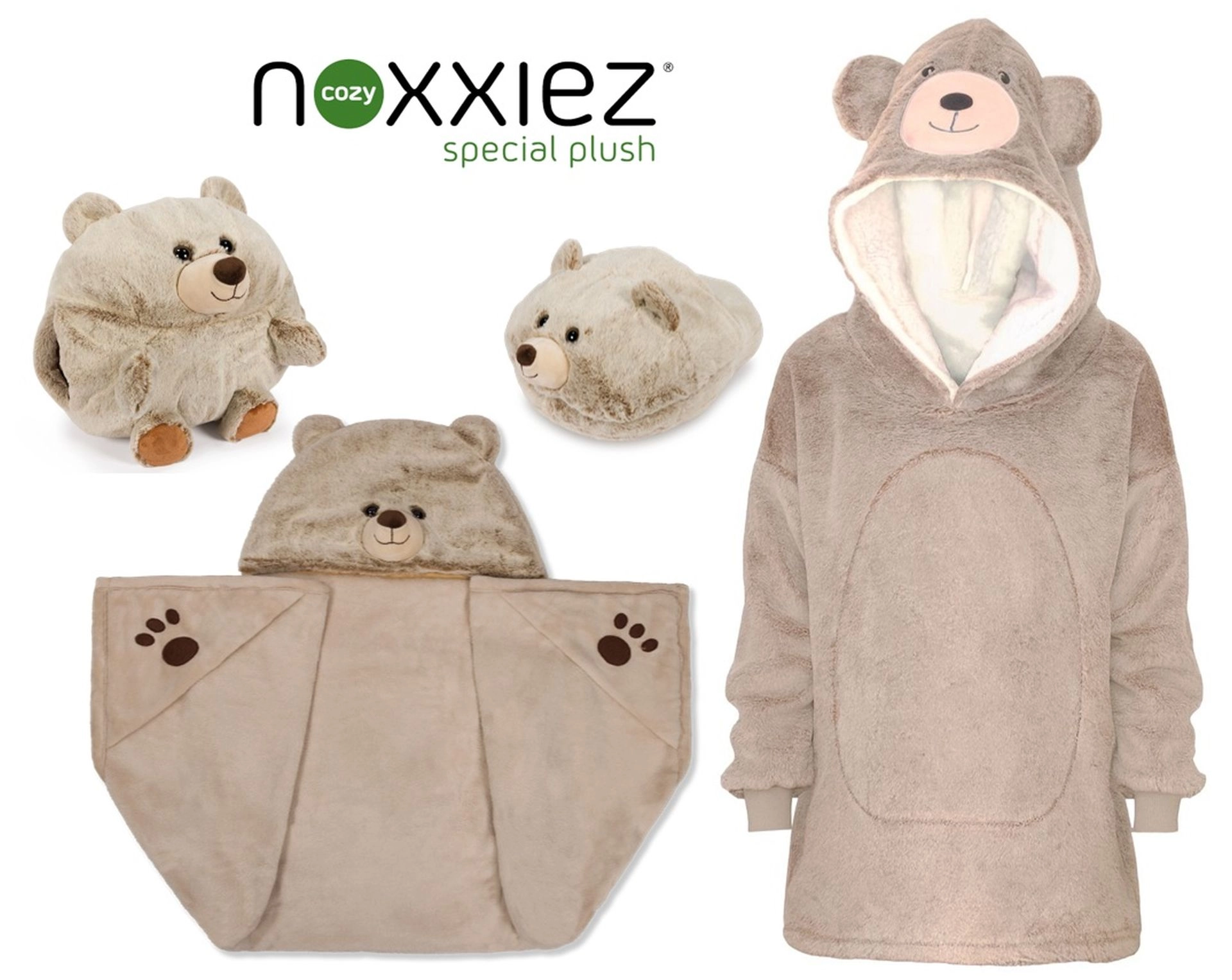 De warme hoodie-deken met capuchon Cozy Noxxiez in berendesign maakt ontspanning extra comfortabel. Binnenin verwarmt de luchtige sherpa fleece, aan de buitenkant verwent de extra zachte flanel. Dankzij de oversized pasvorm tocht het nergens, beweegt je kind vrij en past hij mooi voor kinderen van 3 tot 6 jaar.