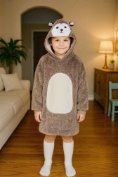 De praktische grote capuchon met dierengezicht houdt hoofd en oren warm, terwijl de ruime voorzak handjes warm houdt en kleine spulletjes bewaart. De lengte tot aan de knieën en de losse, oversized pasvorm zorgen ervoor dat kinderen het overal behaaglijk hebben.