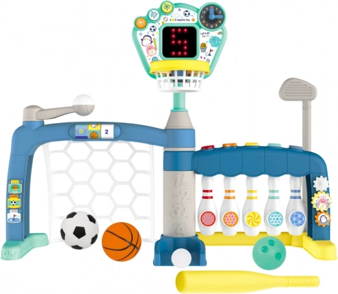 De multifunctionele 5-in-1 sportset is een modern speelgoed dat kinderen veel beweging en plezier biedt. Het kind kan vijf disciplines uitproberen – voetbal, basketbal, bowlen, golf en honkbal – en zo zijn of haar sporttalent ontdekken. Het interactieve LED-scorebord met punten en geluiden volgt de voortgang en motiveert tot betere prestaties, terwijl de verstelbare ring het spel aanpast aan de leeftijd en lengte van het kind.