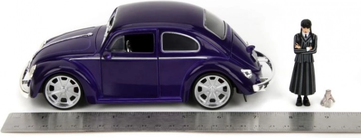 Dankzij de te openen deuren, motorkappen en vrij draaiende wielen is het model ideaal om tentoon te stellen of voor lichte speelscènes. Het meegeleverde figuur van Wednesday Addams geeft de set een uniek en thematisch karakter.