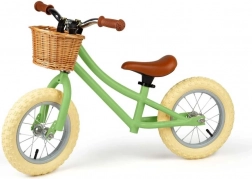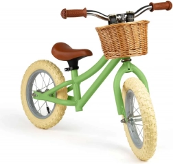 Elegante rieten mand aan het stuur voor kleine spulletjes en speelgoed. Bruine handvatten en zadel geven de loopfiets een tijdloze look.