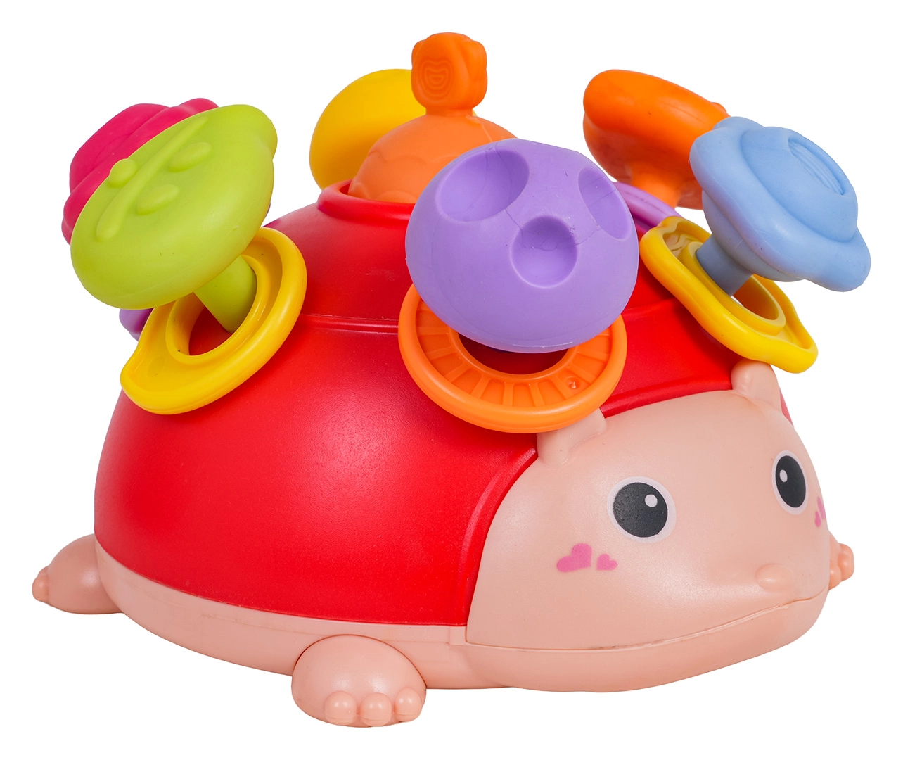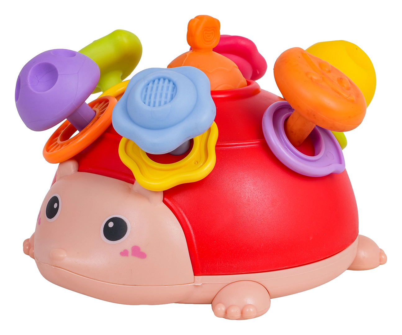 Schattige sensorische egel voor kinderen vanaf 18 maanden die de fijne motoriek, zintuiglijke waarneming en coördinatievaardigheden ontwikkelt. Heeft zachte uitsteeksels die fijn zijn bij doorkomende tandjes, gekleurde rammelringen, een knop om te drukken en te trekken, elastieken aan armen en benen voor veilig trekken en een spinner aan de onderkant voor eindeloos draaien. Gemaakt van veilige materialen zonder scherpe randen, in levendige kleuren die kinderen op een natuurlijke manier uitnodigen om te spelen.