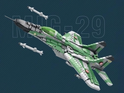 Bouw de iconische MiG‑29 van 1290 stukjes en ontdek de wereld van militaire luchtvaart. Groot model met afmetingen 48 × 34 × 15 cm, realistische camouflage, intrekbaar landingsgestel en de mogelijkheid tot montage van diverse raketten voor een geweldige bouw- en tentoonstelervaring.