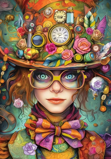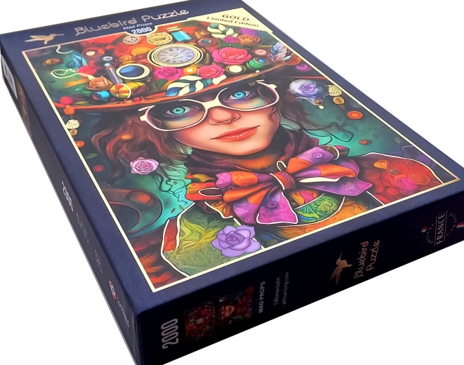 Luxe puzzel Bluebird Gold Edition Gekke Hoed, 2000 stukjes met vergulde details. Groot formaat 69 × 98 cm. Gelimiteerde editie voor veeleisende puzzelaars.