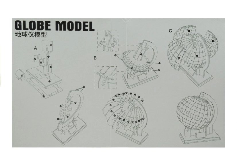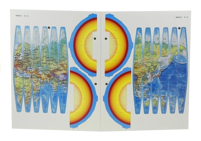 Maak een realistische 3D-globe van stevige onderdelen die na voltooiing je bureau of kinderkamer siert. De onderdelen passen precies in elkaar en het resultaat is een stabiel model met een elegante standaard en het label “GLOBE”. Het bouwen is leuk, leerzaam en geeft een bevredigend gevoel van een voltooid project.