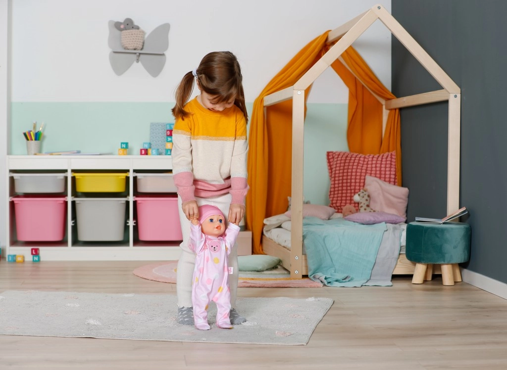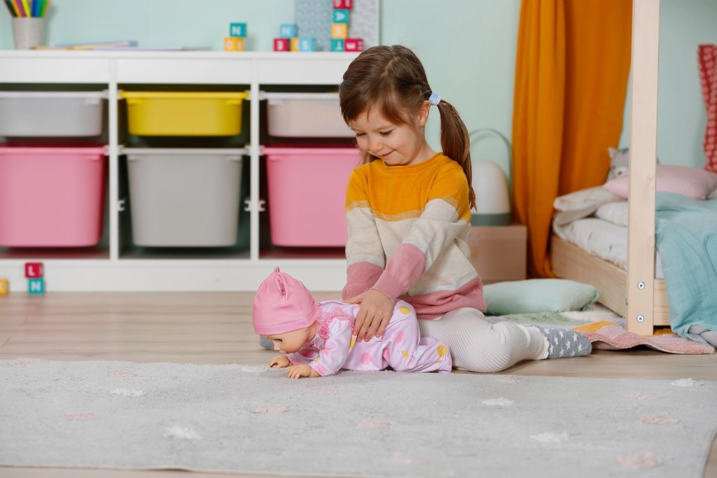 De BABY born Emily pop motiveert kinderen tot beweging en creativiteit – een eenvoudig en veilig mechanisme laat de pop lopen of over de grond kruipen. Zo kunnen kinderen de verzorging van een baby nabootsen, verhalen verzinnen en tegelijk fijne en grove motoriek ontwikkelen.