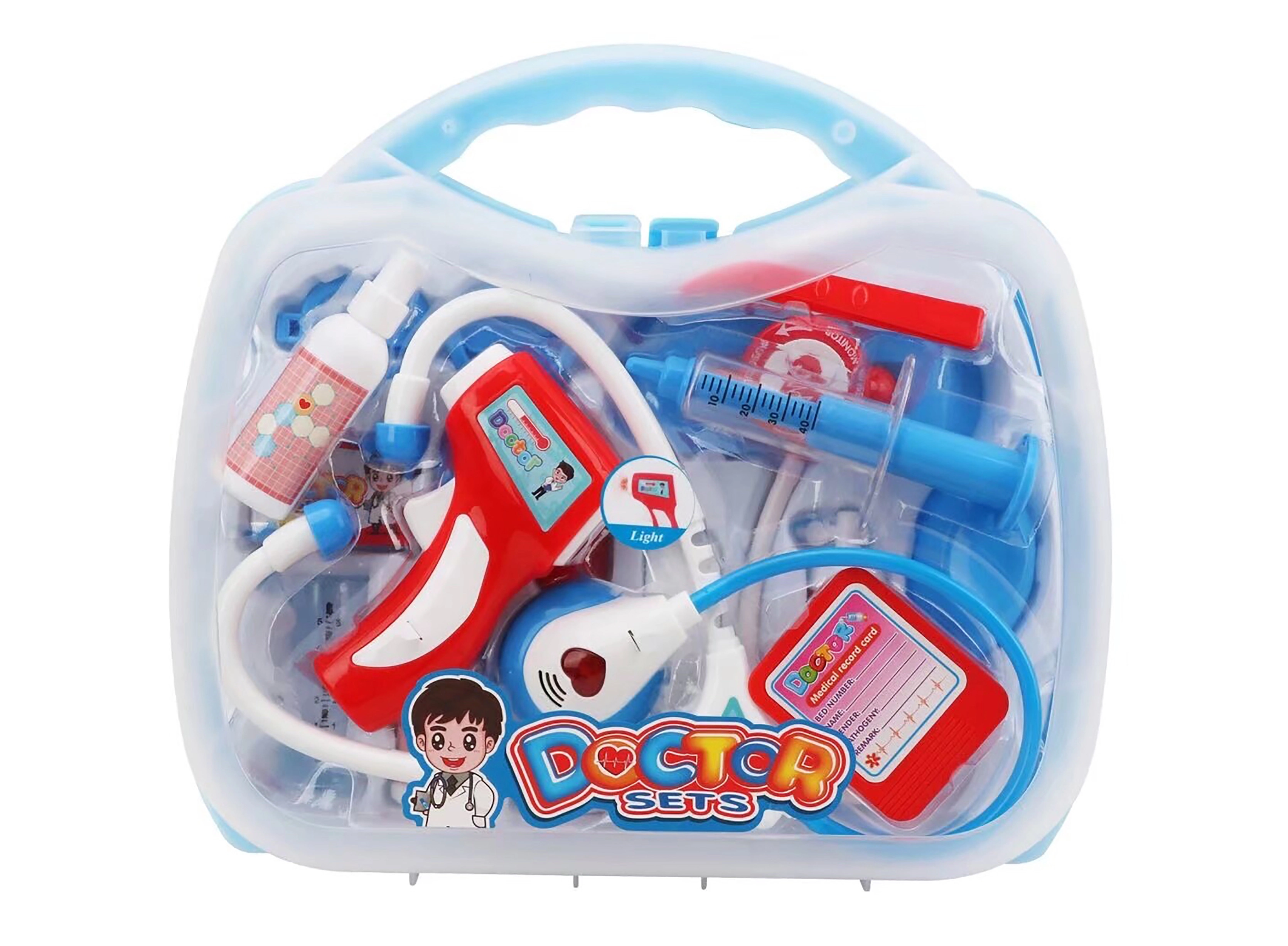 Bereid de kleine dokter voor op het eerste onderzoek met dit praktische dokterskoffertje. Kinderen ontwikkelen hun fantasie, motoriek en sociale vaardigheden door de rol van dokter na te spelen. Dankzij het compacte formaat van 30 cm is het koffertje gemakkelijk mee te nemen en op te bergen.