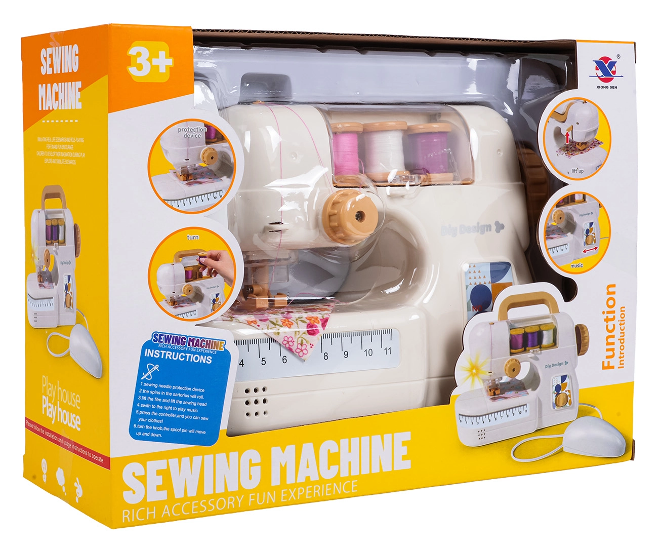 De kindernaaimachine in compact formaat biedt realistisch naaispel. Dankzij de afgeschermde naald is het spelen veilig, terwijl de machine daadwerkelijk het meegeleverde stukje stof doorstikt. Het geïntegreerde lampje en de naaigeluiden versterken de authentieke beleving en stimuleren kinderen om te creëren.