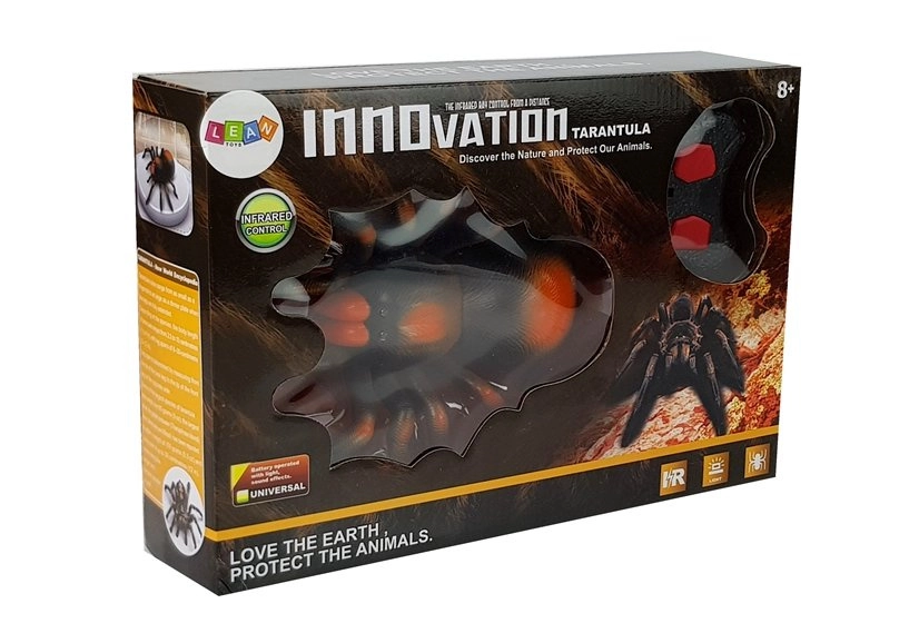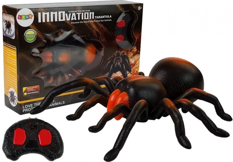 Een realistische op afstand bestuurbare tarantula zorgt voor plezier voor het hele gezin. Dankzij het levensechte uiterlijk, de bewegende poten en de lichtgevende ogen wordt hij een hit voor spelletjes en grappen. De infrarood‑afstandsbediening met twee knoppen maakt vooruit rijden en rechtsom draaien mogelijk. Een geweldig cadeautip voor kinderen vanaf 8 jaar.