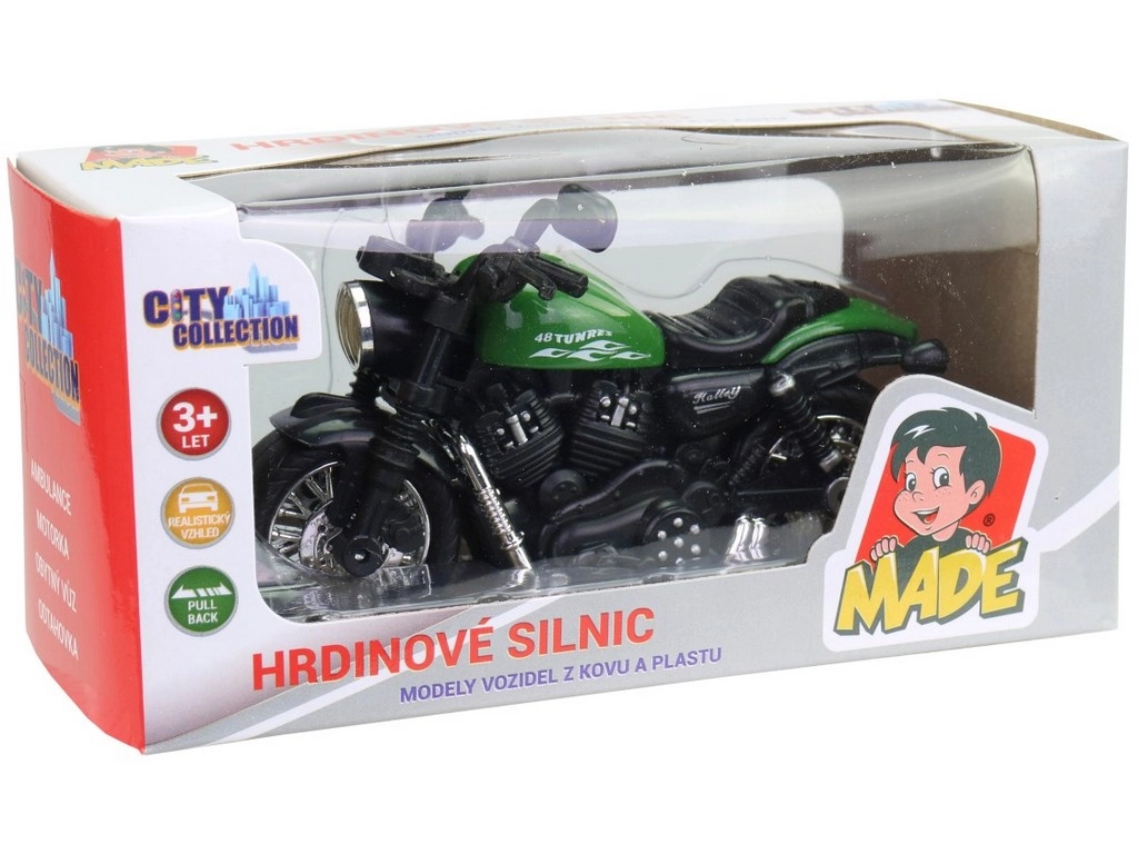 Deze gedetailleerd uitgewerkte metalen motor is een geweldige keuze voor kinderspel en voor in een verzamelvitrine. Het terugtrekmechanisme maakt het mogelijk de motor op te winden en te zien hoe hij vooruit rijdt. De robuuste uitvoering zorgt voor een lange levensduur en veilig speelplezier.