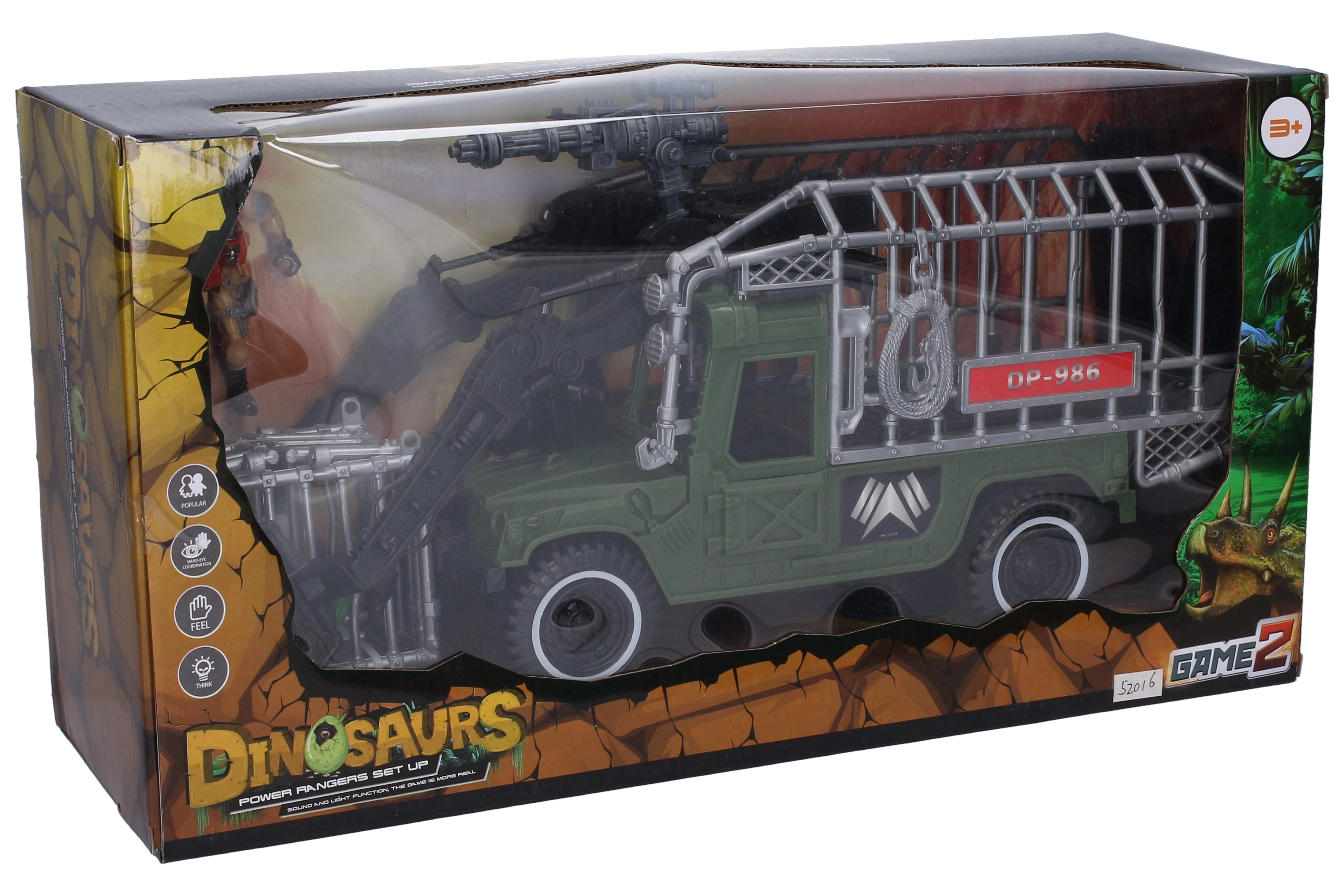 Dinosaurusjager soldaat – set met vrachtwagen en kooi 40 cm