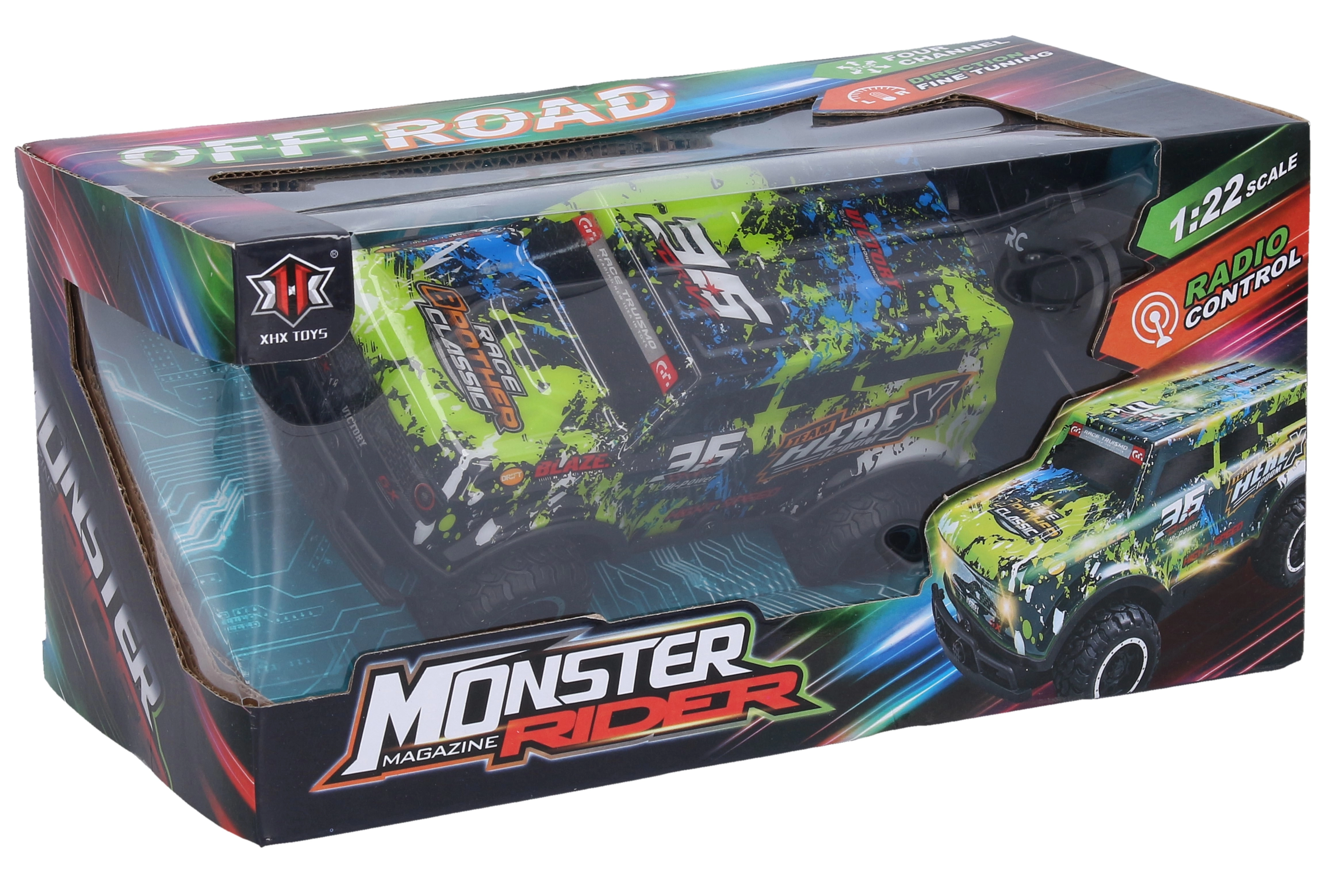 Geniet van een actievolle rit met de lichtgevende RC-auto Monster Rider van 17,5 cm lang. De auto biedt lichteffecten in de carrosserie, eenvoudige bediening op 27 MHz en een praktische ON/OFF-schakelaar aan de onderzijde. Een geweldige keuze voor kinderen en beginners, voor plezier binnen en buiten.
