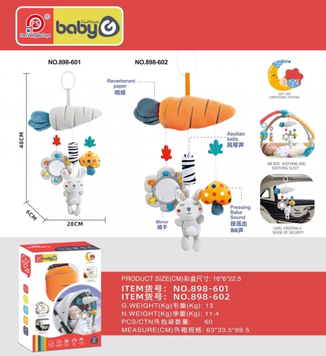 Sensorisch hangspeeltje voor de kinderwagen, het ledikant of het autostoeltje, geschikt vanaf de eerste levensdagen. Gemaakt van zachte en veilige materialen, met knisperende en piepende elementen, windgongen en een veilig spiegeltje. Levendige kleuren ondersteunen de concentratie, het grijpen en de zintuiglijke ontwikkeling van je baby.