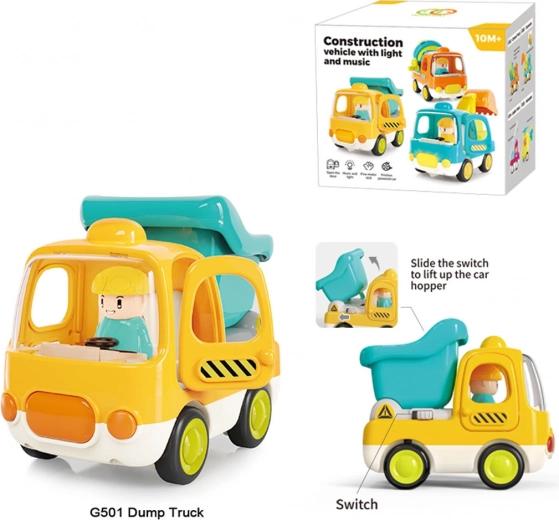 Het autootje beweegt gemakkelijk over de vloer; de wrijvingsaandrijving zorgt voor soepel rijden zonder een batterijmotor. Kinderen zullen genieten van de openende zijdeuren van de cabine en de bewegende kiepbak, die de fijne motoriek en verbeelding stimuleren.