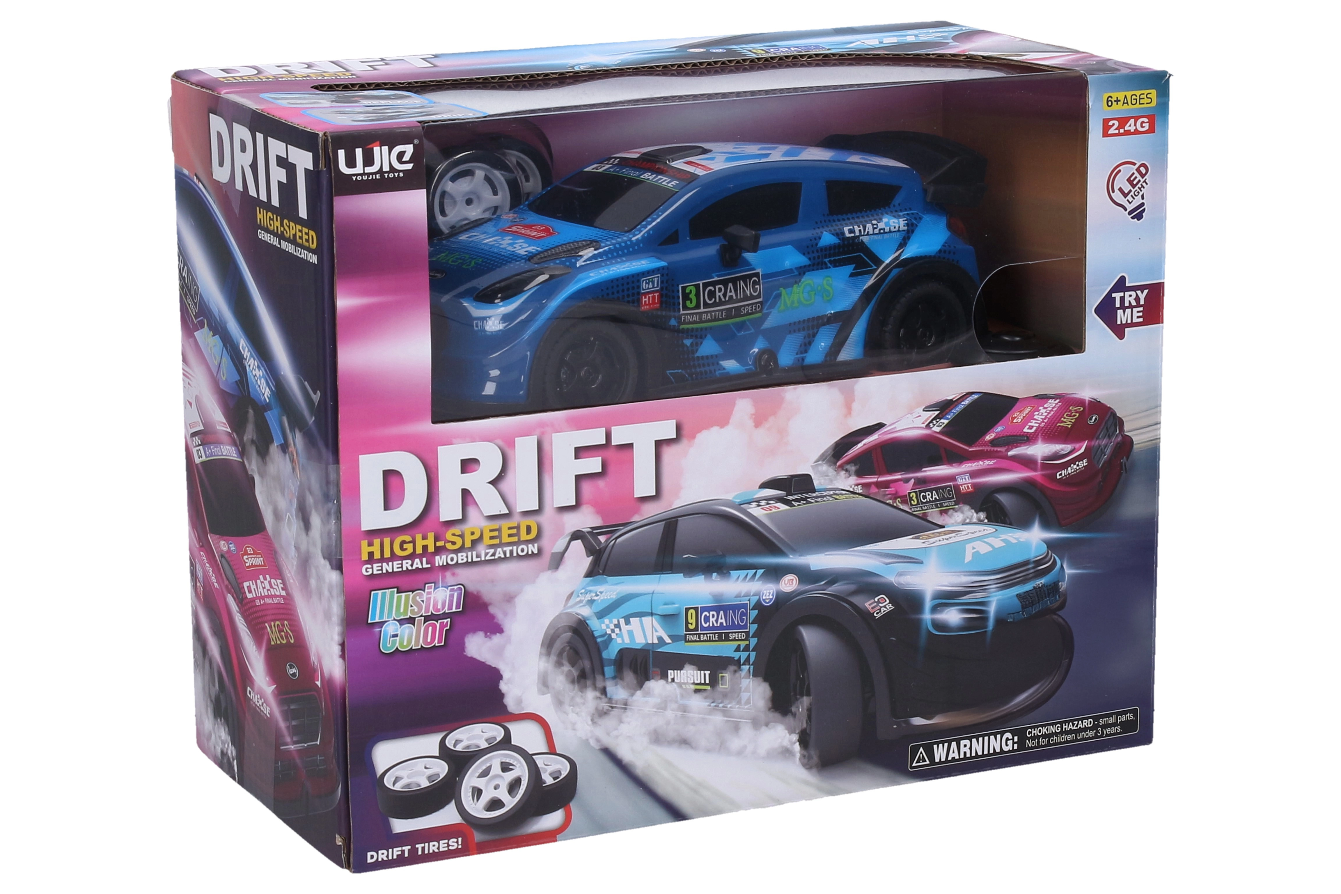 Geniet van een adrenaline-rit met de compacte RC-auto Sprint 23, die een driftmodus, lichteffecten en preciese besturing op 2,4 GHz biedt. In de verpakking vind je twee sets wielen (standaard en drift), een pistoolzender en een oplaadbare accu voor de auto – alles voor snelle en leuke ritten tot 12 km/u met een bereik tot 40 m.
