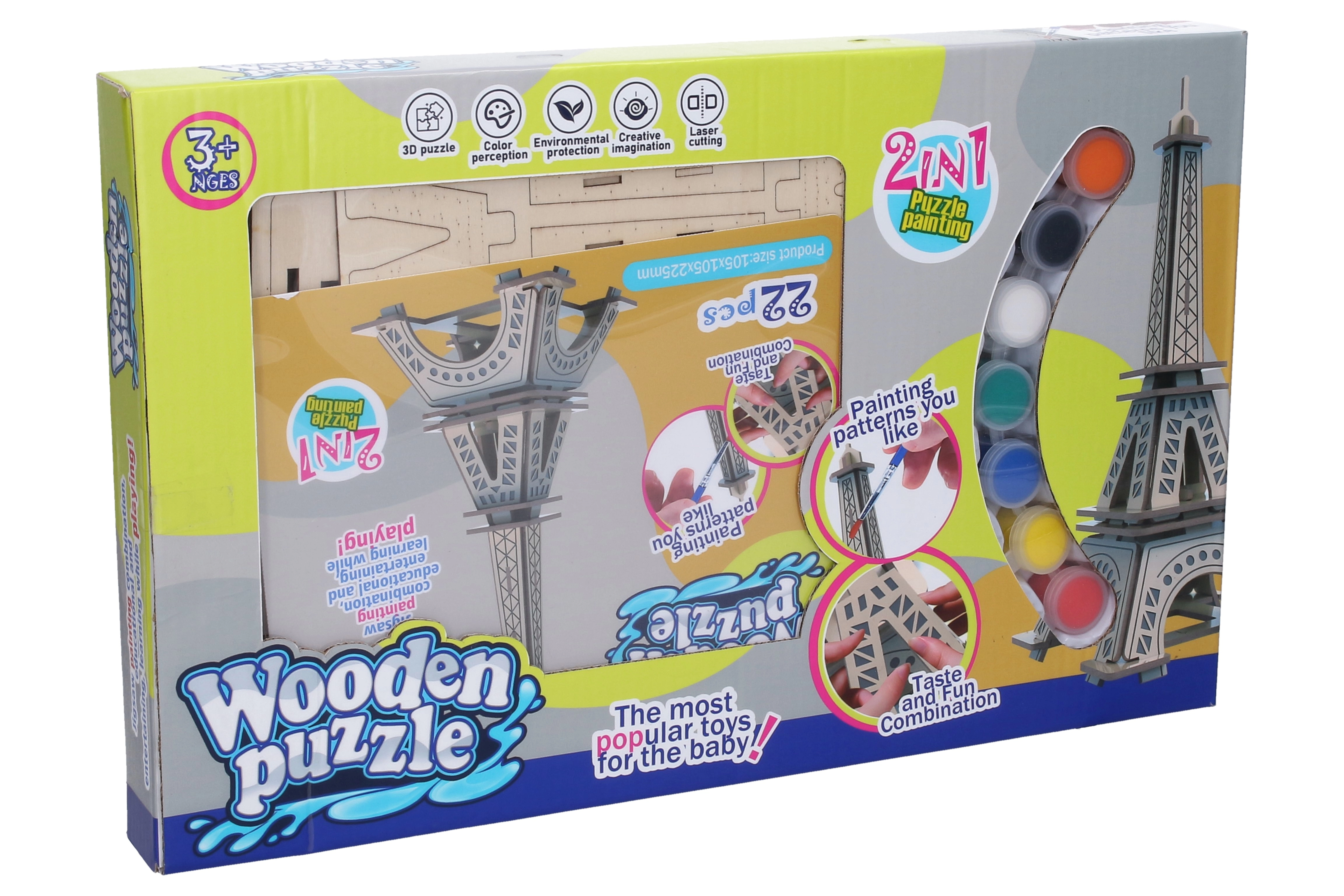 - 3D houten puzzel, verfk set, penseel, geïllustreerde handleiding