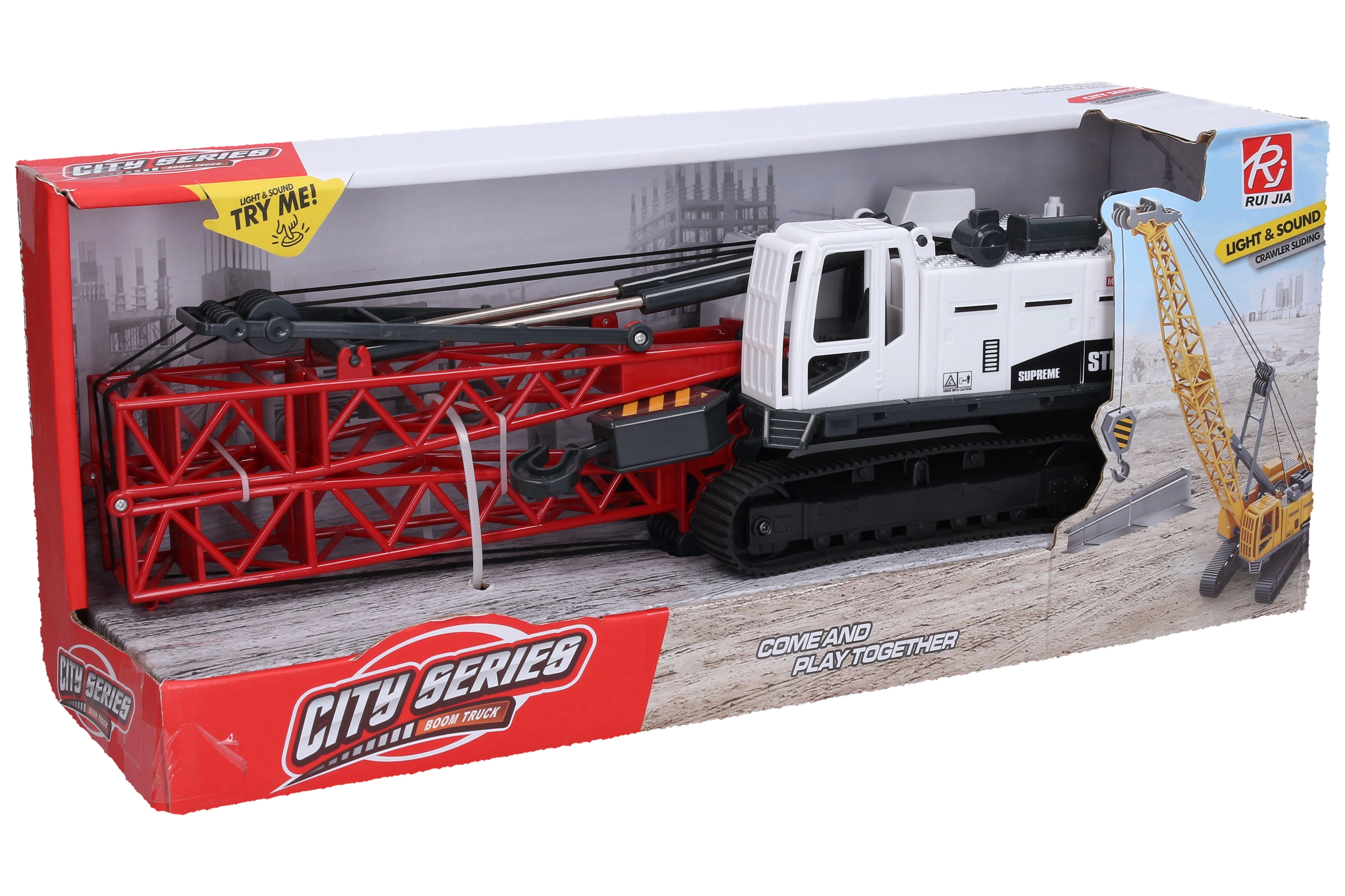 Deze rupskraan biedt kinderen realistisch bouwplezier met eenvoudige bediening. De robuuste constructie, opvallende details en soepele rupsbeweging stimuleren de fantasie en fijne motoriek. Licht- en geluidseffecten versterken de authentieke bouwervaring.