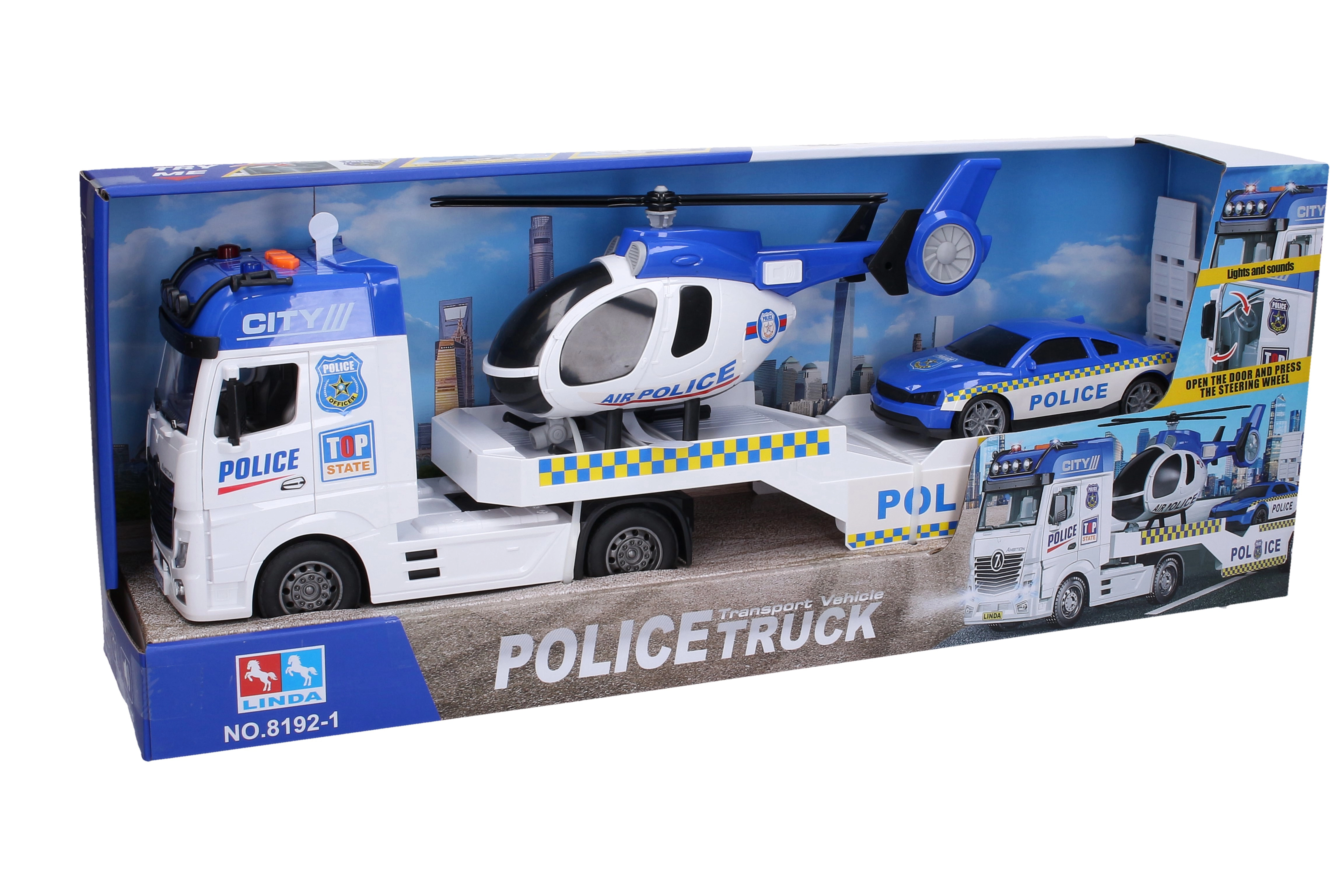Deze gedetailleerde politieset zal elk kind blij maken dat van actiescènes en reddingsmissies houdt. De grote trekker met politielicht wordt aangevuld door een helikopter met functionele geluidseffecten en een compacte auto voor snelle interventies. Dankzij de robuuste uitvoering en de frictieaandrijving is het spel intuïtief en leuk.