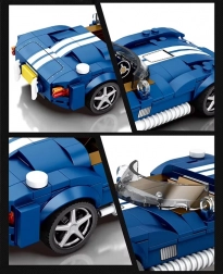 De blauwe sportwagen in tijdloze roadster-stijl zal liefhebbers van klassiekers en technische bouwsets bekoren. De lage, langgerekte carrosserie met afgeronde neus, open cockpit en opvallende spatborden geven het model een authentieke look. Met 312 onderdelen bouw je een effectief en stabiel model dat schittert op de plank en in je collectie.