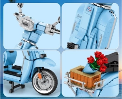 De bouwset is doordacht opgedeeld in zakjes en voorzien van stickers met details, waardoor de bouw overzichtelijk en leuk is. Na voltooiing waardeer je de stevige constructie, de functionele standaard en de authentieke proporties van de legendarische scooter.