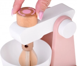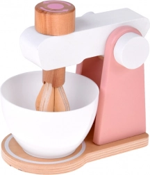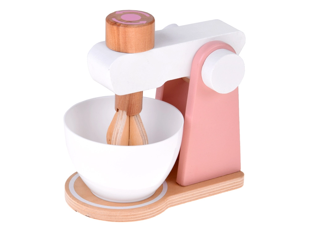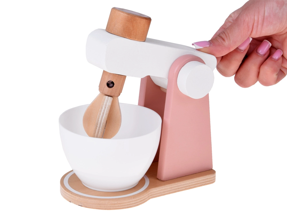 Stabiele houten constructie, afneembare kom en werkende draaiknop om het mixen van deeg of crème te simuleren. Ideaal voor kleine banketbakkers.