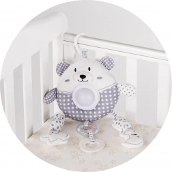 De pluchen teddy Big Bear is een zacht en veilig hangspeeltje dat je baby vermaakt tijdens wandelingen en tijdens het rusten in het ledikant. De gevarieerde melodieën en zachte lichteffecten ondersteunen de zintuiglijke ontwikkeling en helpen een rustige sfeer te creëren.
