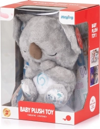 Deze schattige koala geeft kinderen een gevoel van veiligheid dankzij het effect van een oplichtend buikje met “ademhaling”, dat een kalme sfeer creëert bij het inslapen. Gemaakt van uitzonderlijk zachte en fijne stof, ook mild voor de gevoelige babyhuid.