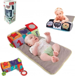 Contrasterende kleuren, texturen en kleine speeltjes ondersteunen de ontwikkeling van zicht, tast en coördinatie. Dankzij het lage gewicht is de set ideaal voor thuis en op reis – altijd klaar voor veilig spel en ontspanning.