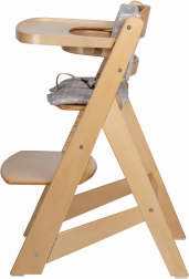 Het afneembare dienblad en de houten veiligheidsbeugel maken een eenvoudige overgang mogelijk van een hoge kinderstoel naar een stoel aan tafel. De geïntegreerde 3-puntsgordel en de comfortabele bekleding verhogen de veiligheid en het comfort, ook bij langer zitten.