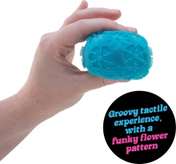 Ontdek de antistress knijpbal SCHYLLING NeeDoh Flower Power met een fluwelen oppervlak, funky bloemenpatroon en zacht ritselend geluid bij het knijpen. Helpt stress en angst te verminderen, bevordert focus en rust en is gemaakt van veilige, niet-giftige materialen. Verkrijgbaar in meerdere kleuren.