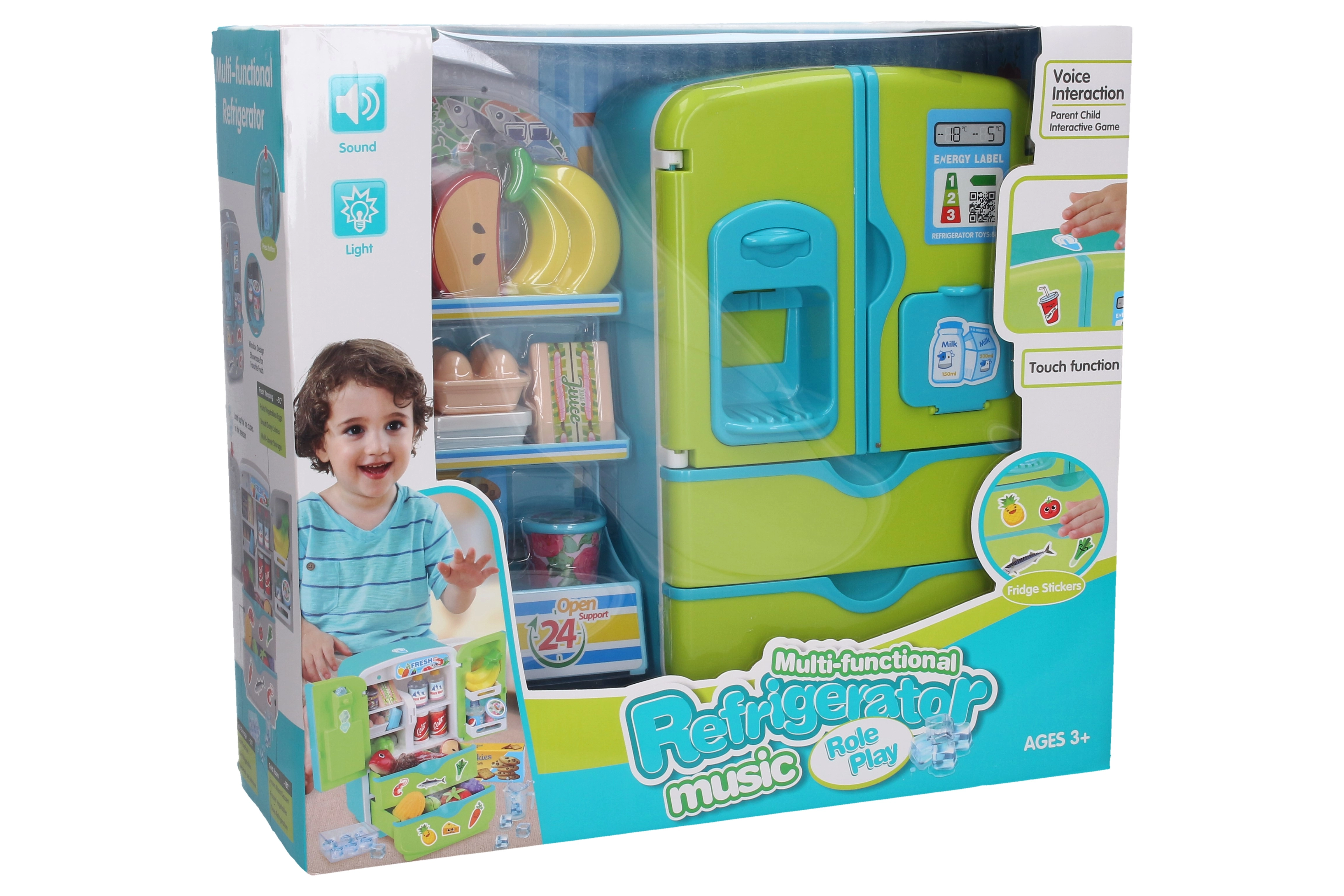 Deze kinderkoelkast met aanvullend rek en een set etenswaren is een geweldig speelgoed voor de ontwikkeling van sociale vaardigheden en creatief rollenspel in huis of winkel. Dankzij de realistische effecten ervaren kinderen een authentiek gevoel van het gebruik van een apparaat, terwijl de touchbediening het inschakelen van functies vereenvoudigt.