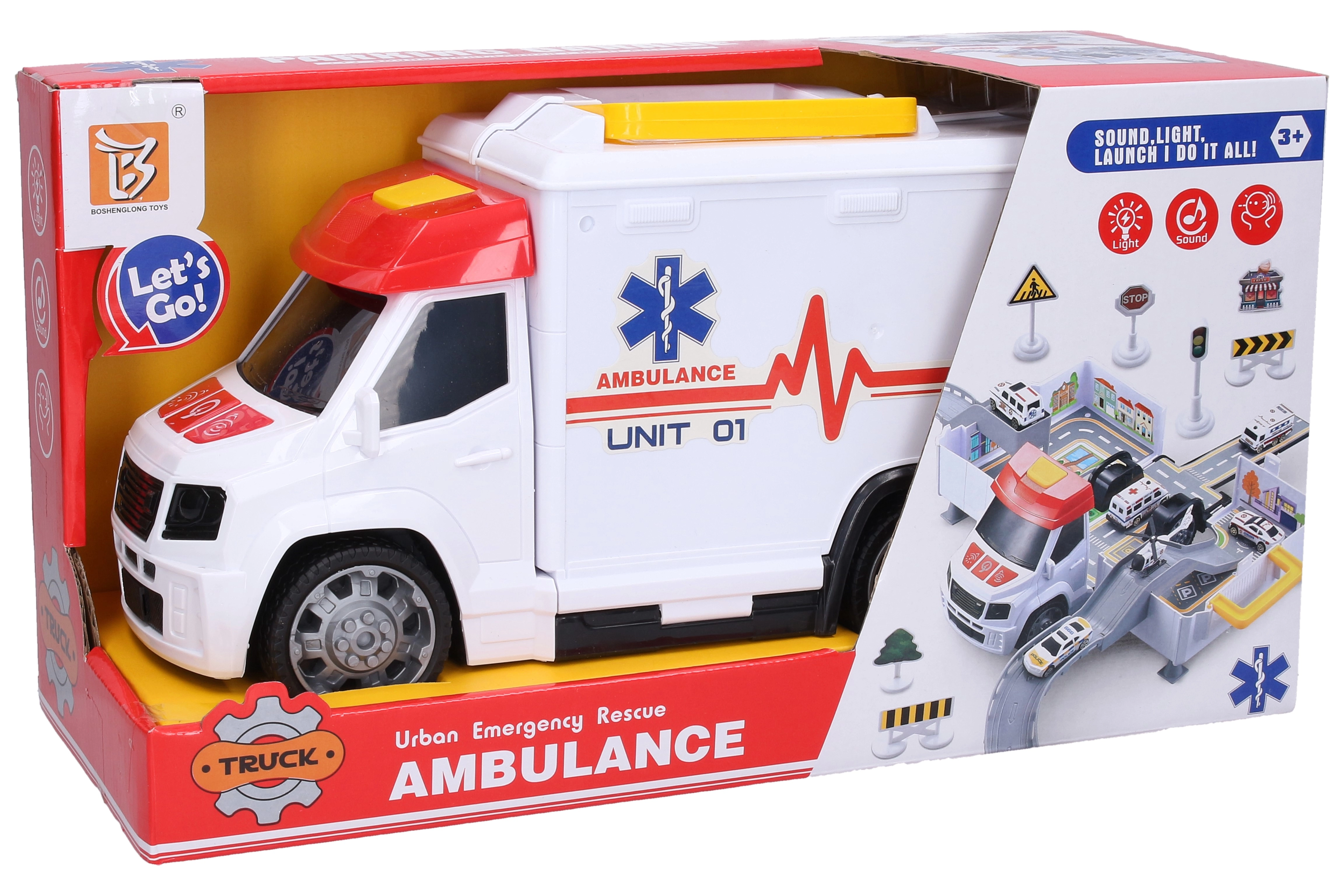 Deze gedetailleerde ambulance verandert in een handomdraai in een complete garage en ziekenhuisterrein, waar kinderen talloze reddingsscenario’s kunnen naspelen. Dankzij de licht- en geluidseffecten is het spel extra realistisch en de bediening is eenvoudig met knoppen op de motorkap.