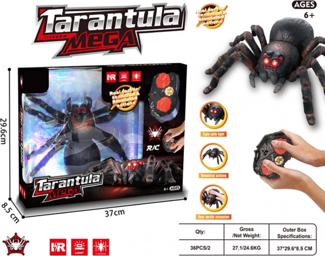 Deze mega-tarantula oogt door zijn acht poten en gedetailleerde afwerking zeer realistisch – ideaal voor spel, grappen en thema-evenementen. Besturing op 2,4 GHz zorgt voor een stabiel signaal zonder storingen, zodat kinderen kunnen genieten van vloeiende bewegingen in huis of op een kleinere oppervlakte.