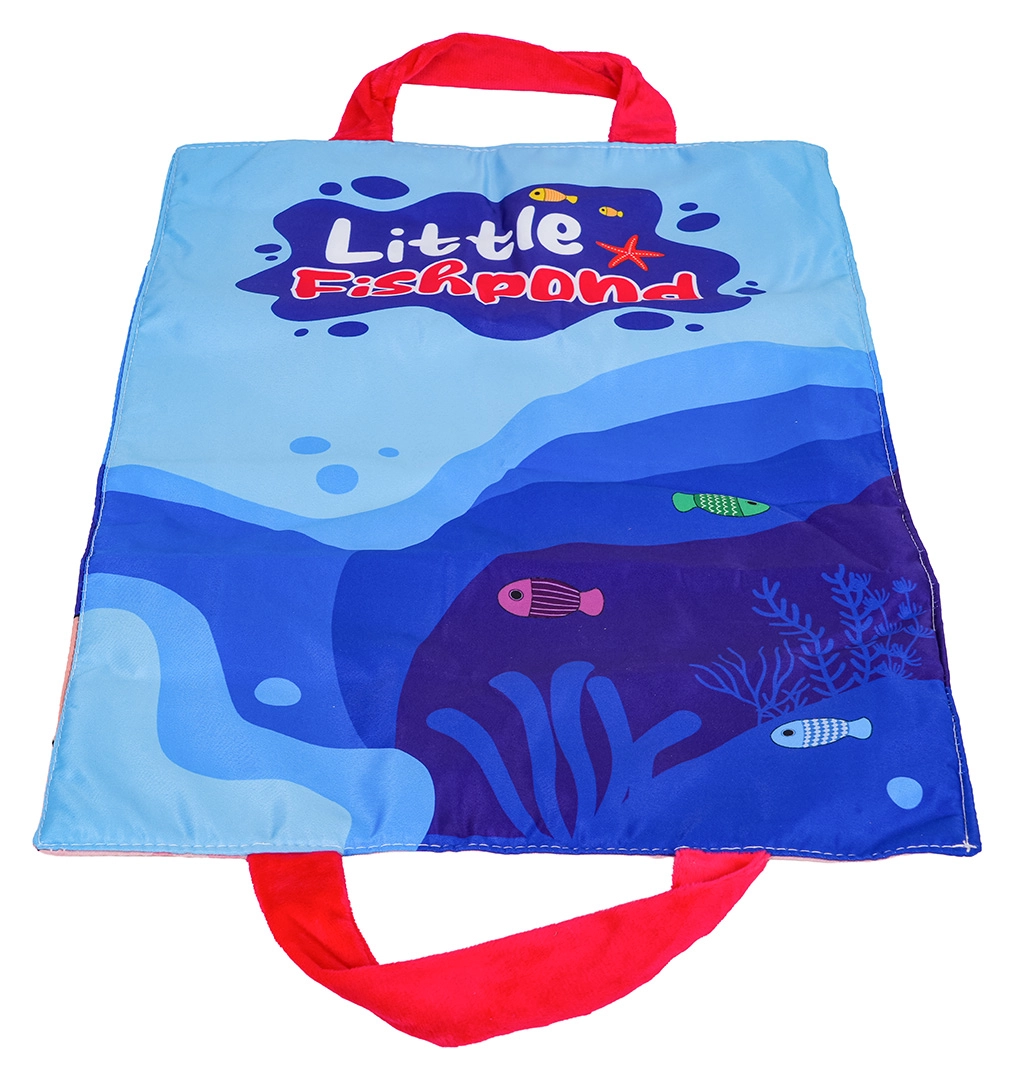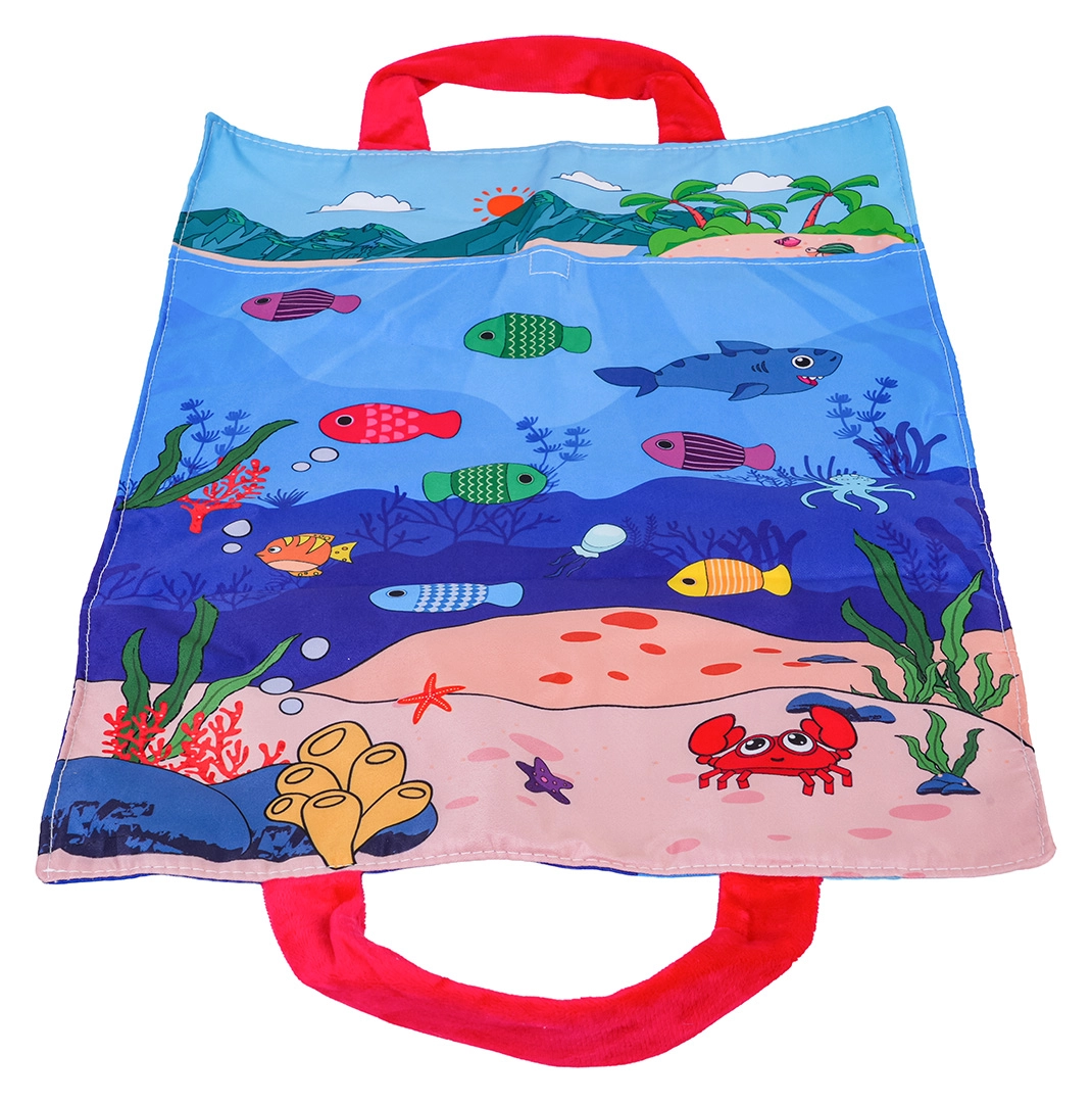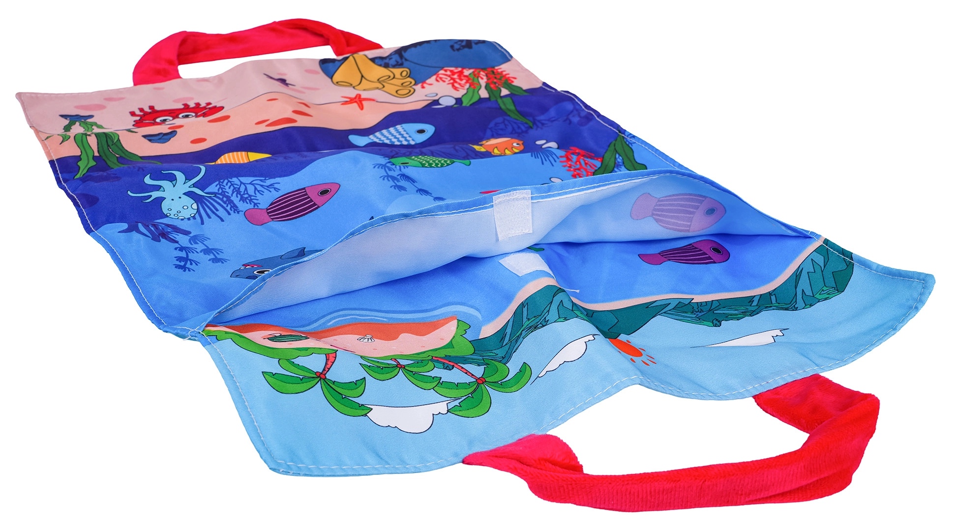 De mat met zeethema heeft ingenaaide handgrepen en kan worden gebruikt als draagtas. Je pakt alle onderdelen eenvoudig in en neemt ze mee op uitstapjes of bezoek.