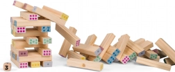 - 48 houten blokken (ca. 15 × 4 × 2,5 cm), 1 dobbelsteen (ca. 3 cm)