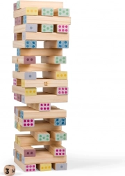 Een leuk vaardigheidsspel in Jenga-stijl voor 2–10 spelers vanaf 4 jaar, dat spanning combineert met het leren van cijfers. Spelers gooien met de dobbelsteen en nemen blokken weg volgens de worp – één blok, of twee waarvan de som overeenkomt met het aantal ogen. Het doel is de toren in evenwicht te houden en tegelijk rekenvaardigheden, motoriek, oog-handcoördinatie, concentratie en geduld te ontwikkelen.