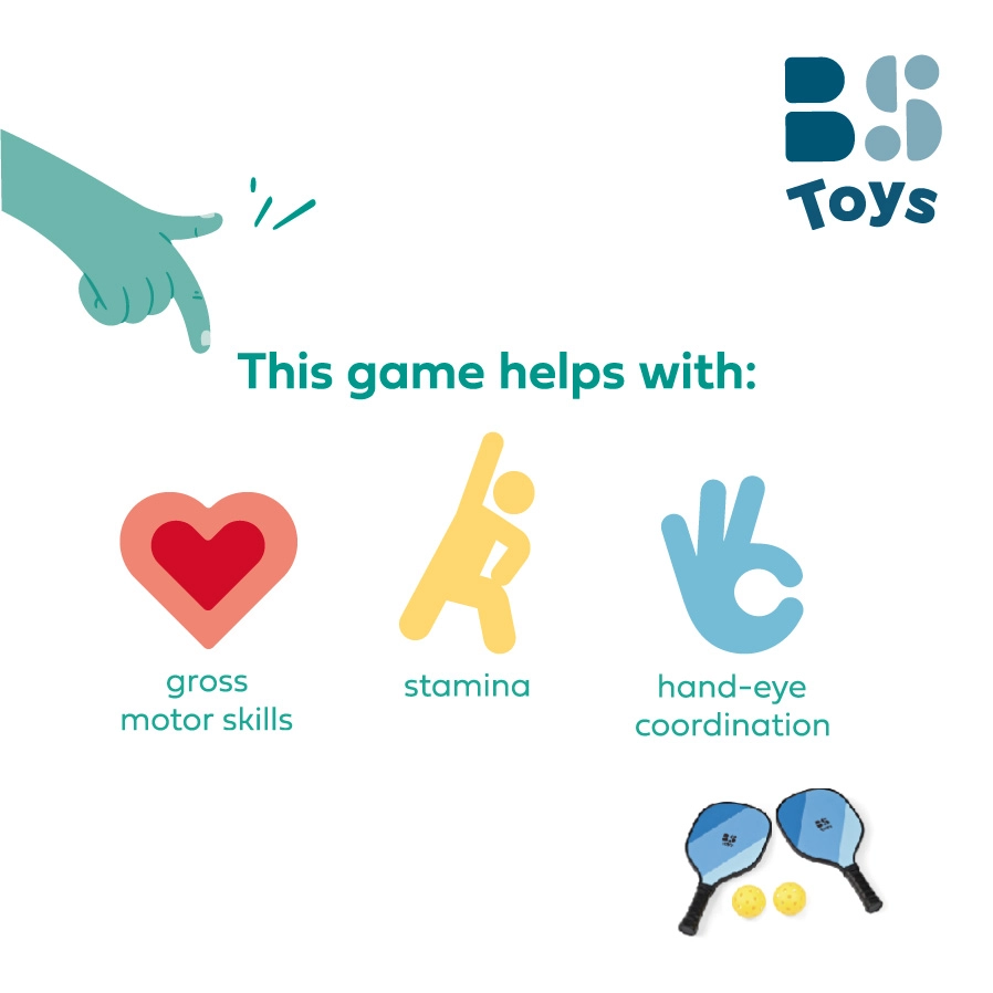Pickleball is een dynamisch balspel dat elementen combineert van tennis, badminton en tafeltennis. Dankzij de lichtere peddels en de langzamere kunststof bal met gaten is het toegankelijker dan klassiek tennis en wordt het snel geliefd bij kinderen, beginners en volwassenen. De set is geschikt om binnen en buiten te spelen, vanaf 8 jaar.