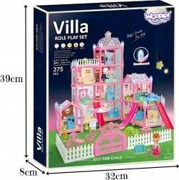 Ontdek het stijlvolle, meerverdiepingen poppenhuis van WOOPIE dat kinderen zal verrassen met de rijke uitrusting en het oog voor detail. Dankzij 275 onderdelen, waaronder meubels, accessoires en figuurtjes, kunnen jonge bouwers hun eigen verhalen creëren en het interieur precies naar hun fantasie herinrichten. De nachtverlichting tovert het huisje ook na zonsondergang om tot een prachtige scène en geeft het spel een magische sfeer.