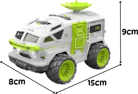 Stap samen met kinderen de wereld van kosmische ontdekkingen binnen met de Woopie-voertuig – een gedetailleerd model met een draaende radar, openend frontschild en licht- en geluidseffecten. De robuuste ABS-constructie en rubberen terreinbanden zorgen voor uitstekende grip en duurzaamheid bij dagelijks spelen. Inclusief een astronautenfiguur die in de cabine past en batterijen voor direct speelplezier.